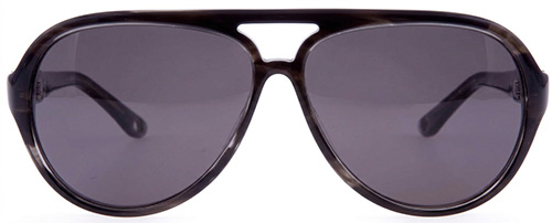 The plastic aviator sunglasses have a black and grey frame.