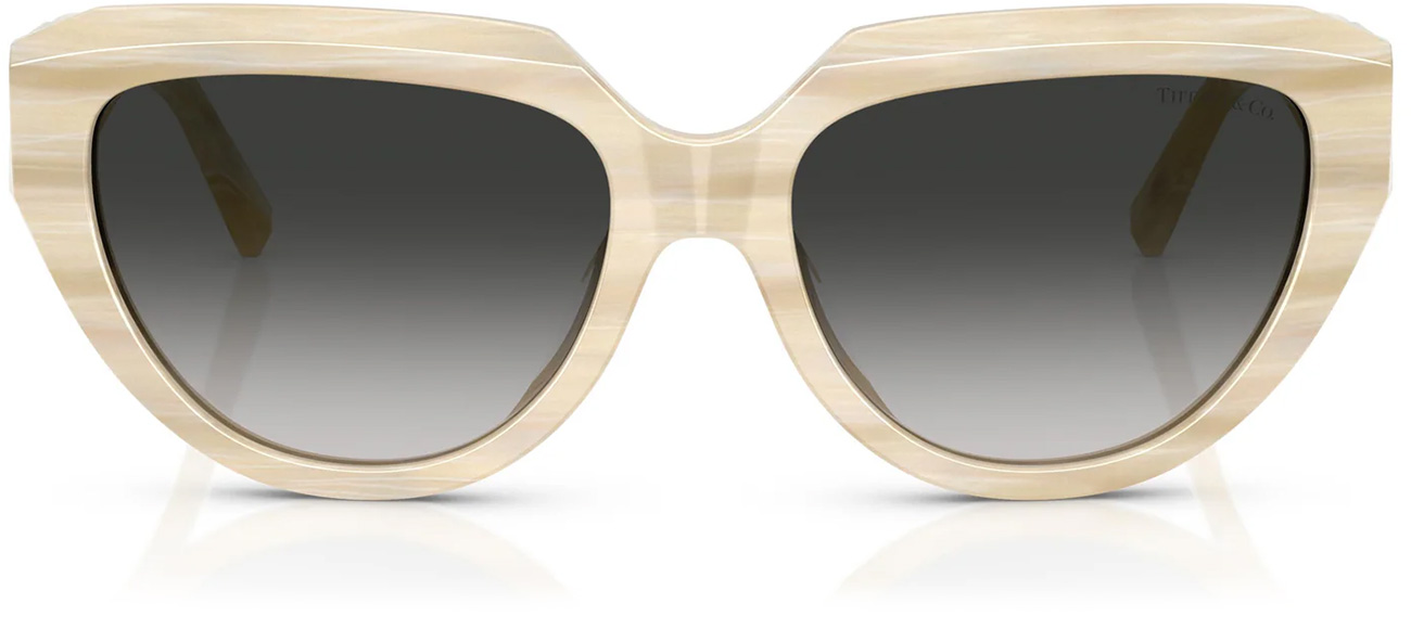 The cream colored Tiffany & Co sunglasses have a bold frame with T logo on the temples.