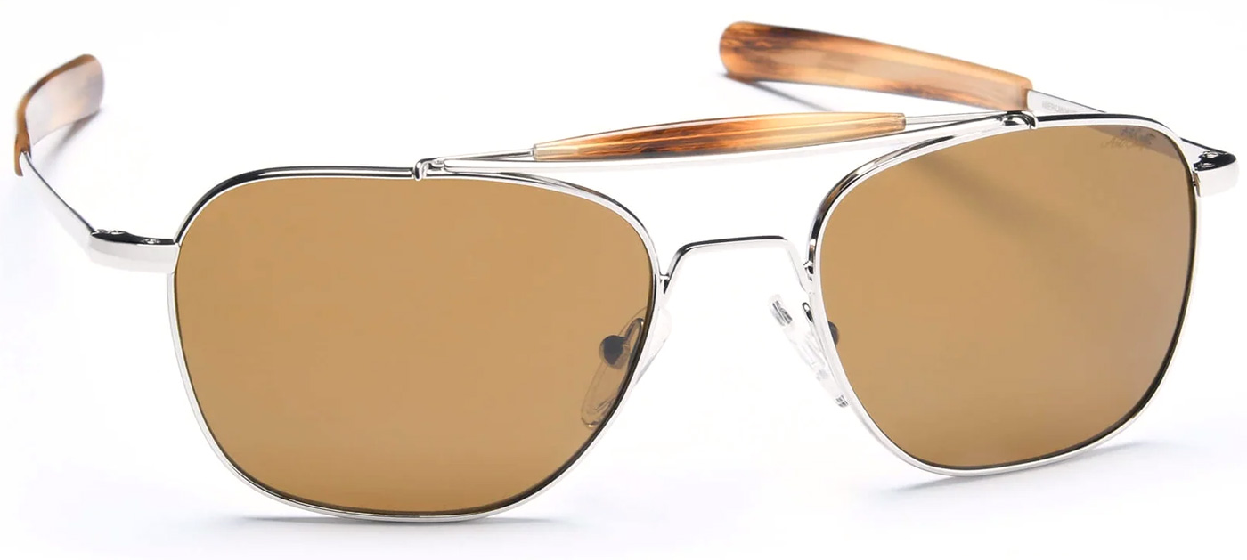 These Art-Craft aviator sunglasses have a polished chrome frame, with tortoise acetate sweat bar and brown lenses and straight 'bayonet' arms.