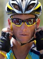 Professional cyclist and 7-time Tour De France winner Lance Armstrong wears Oakley Jawbone sunglasses.