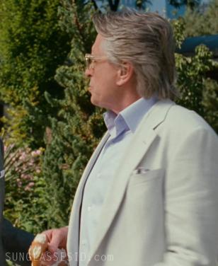 In the movie Wall Street 2: Money Never Sleeps, Michael Douglas as Gordon Gekko wears a pair of Barton Perreira Halston glasses with a see-through frame and custom, lightly shaded glasses.