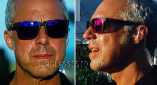 The Oakley Holbrook in the film seems to be the model with Matte Black frame, red details and Positive Red Iridium lenses, modelnumber OO9102-36.