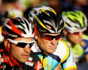Professional cyclist and 7-time Tour De France winner Lance Armstrong wears Oakley Radar Path sunglasses.