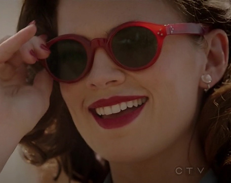 Hayley Atwell wears custom made red Old Focals Architect sunglasses in the tv series Agent Carter.