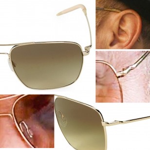 Note that James Spader has sometimes been spotted with a different model sunglasses, with a similar gold frame but with tortoise sides on the arms (no ID yet).
